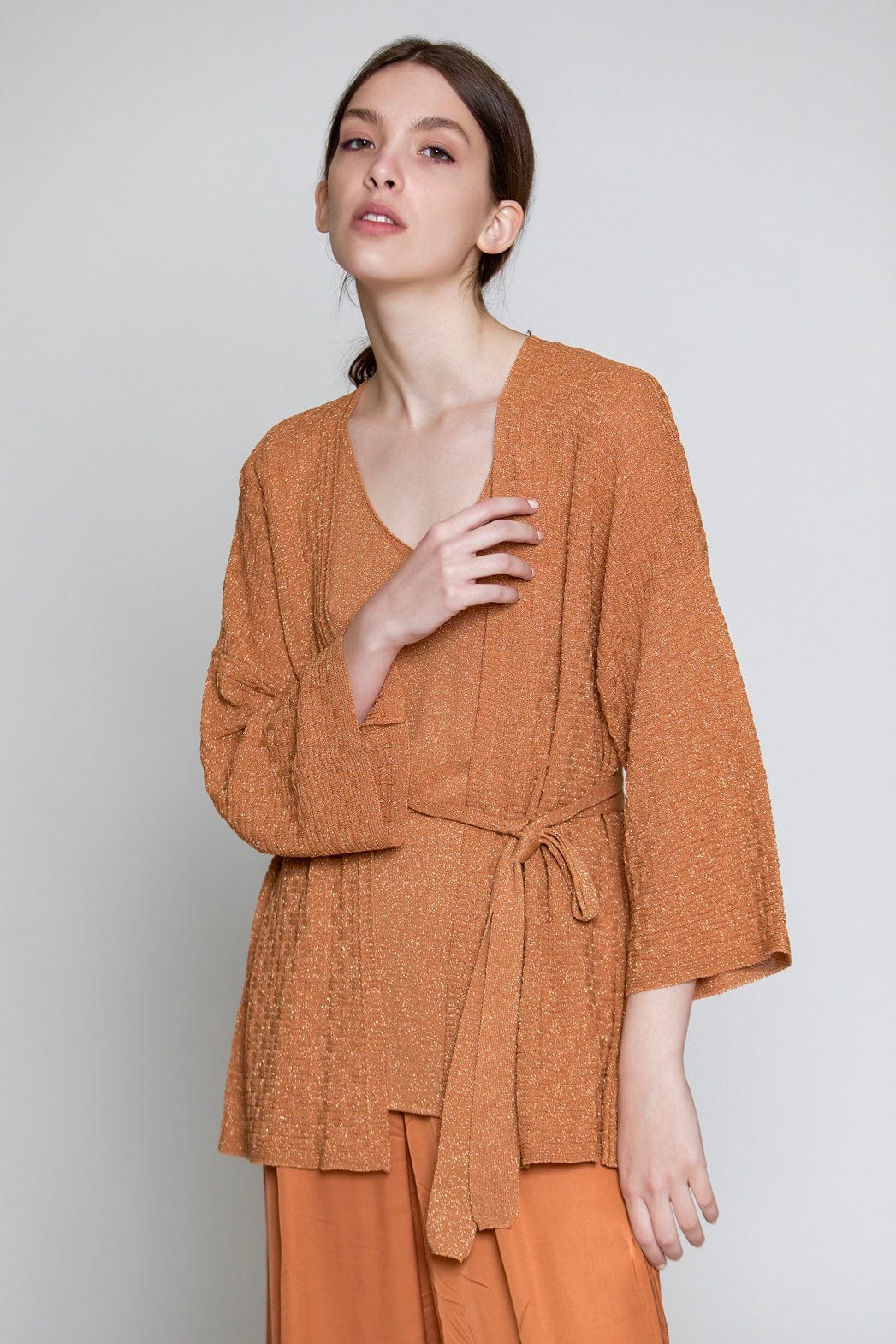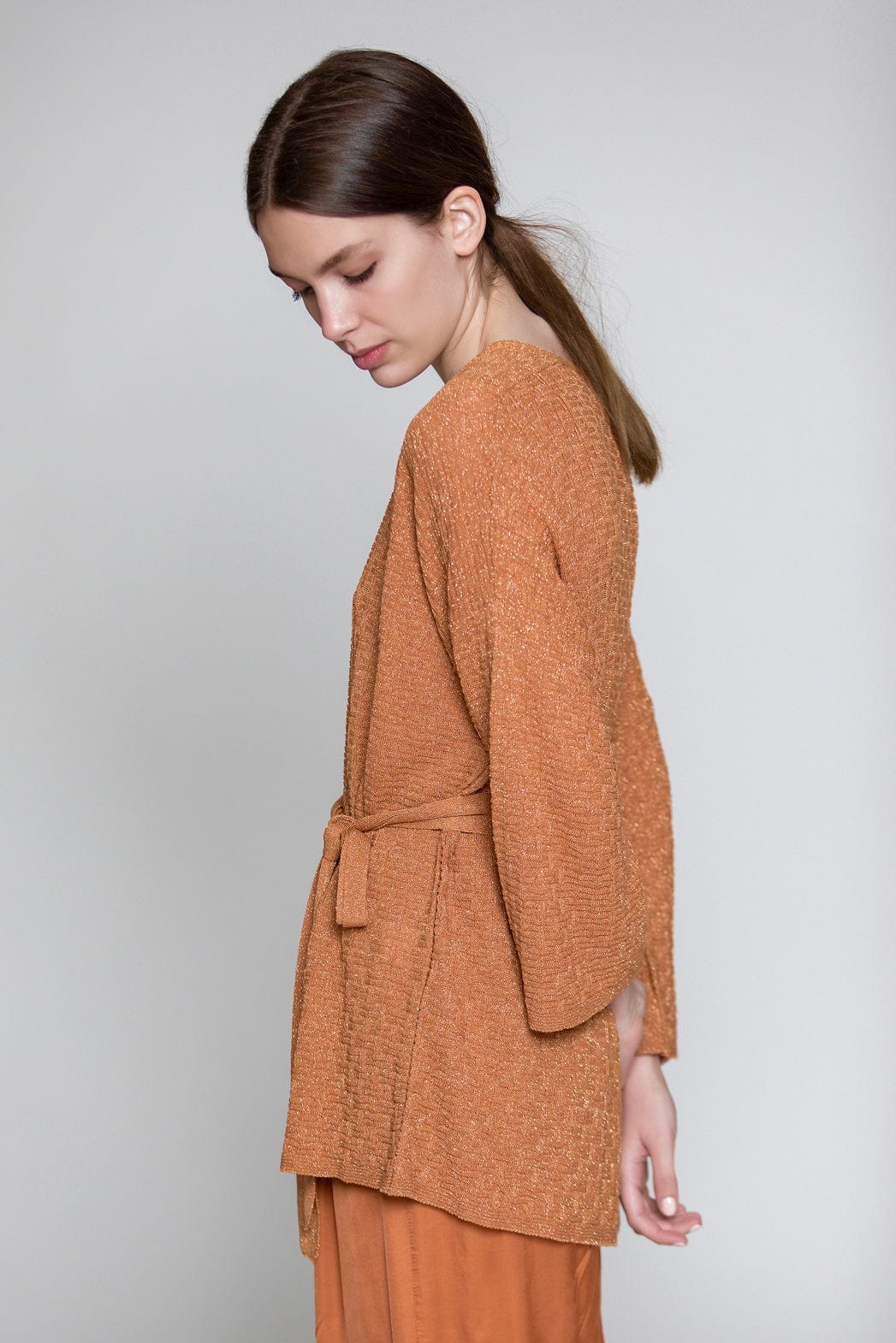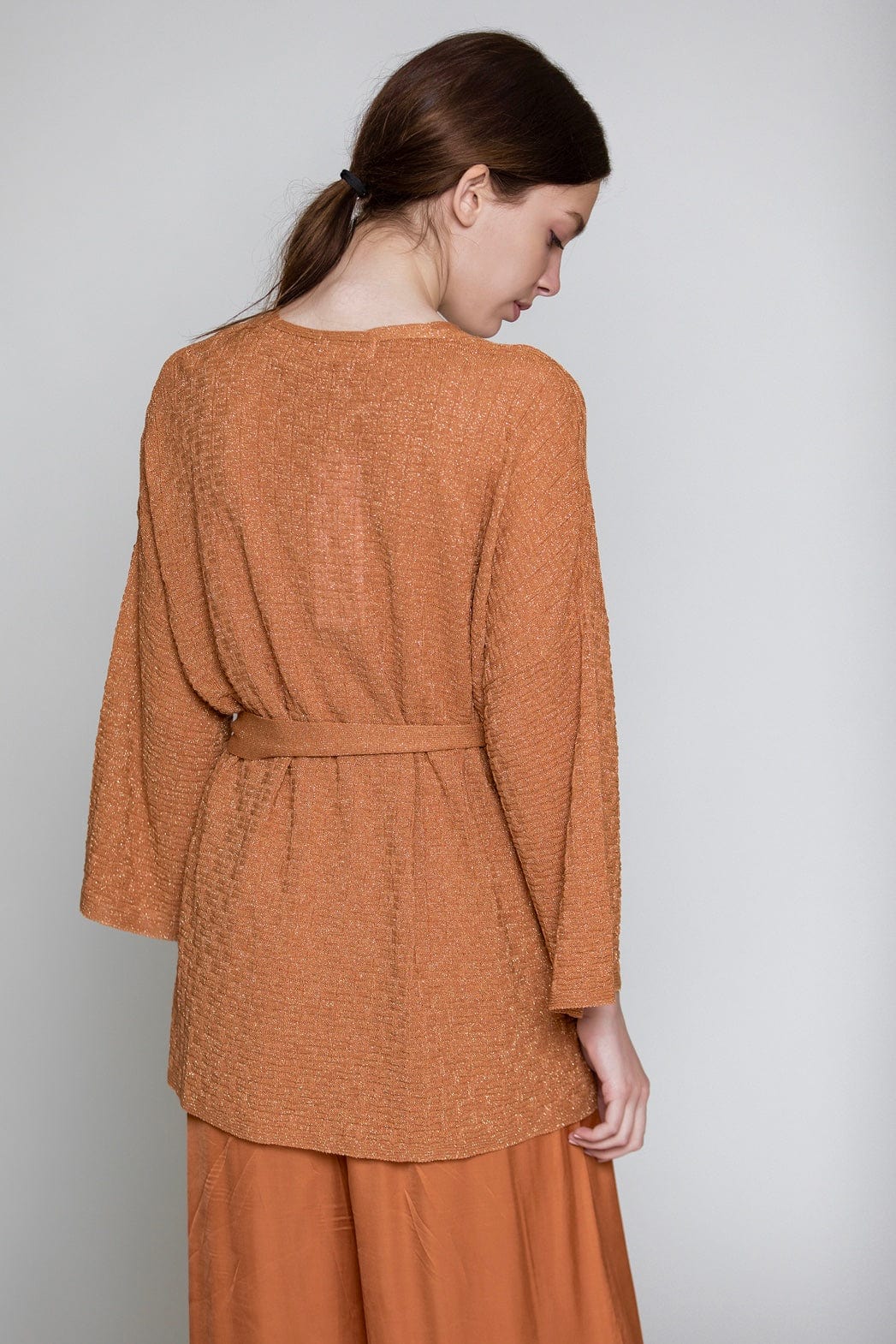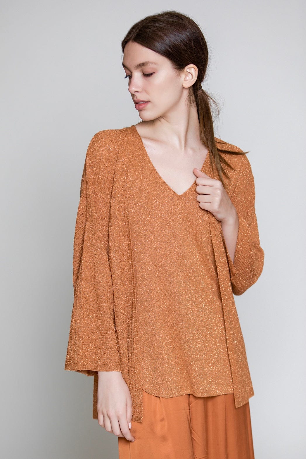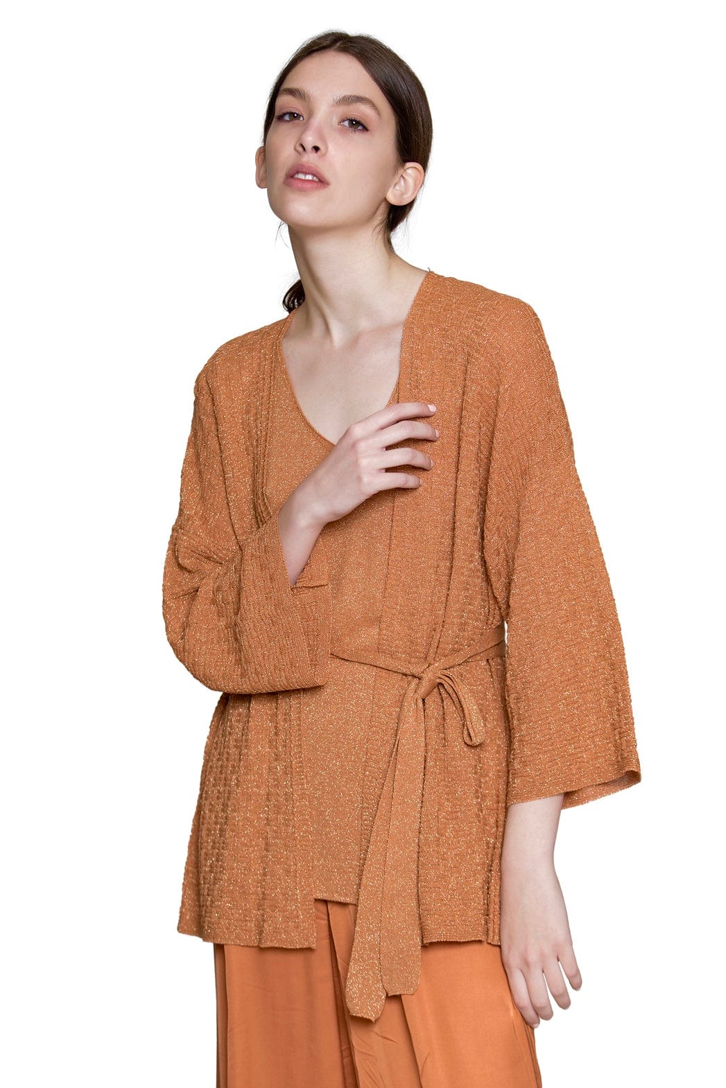 Aggel Cardigan with Metallic Weave Peach SS12140