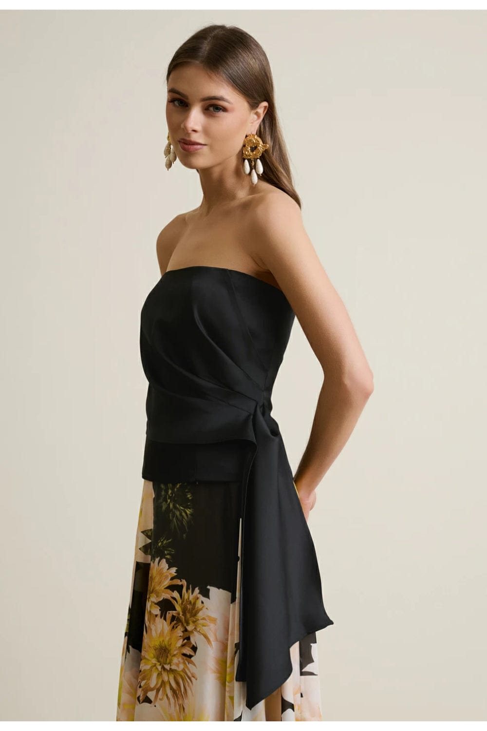 Desiree Satin Top with Pleats Black 23.42004