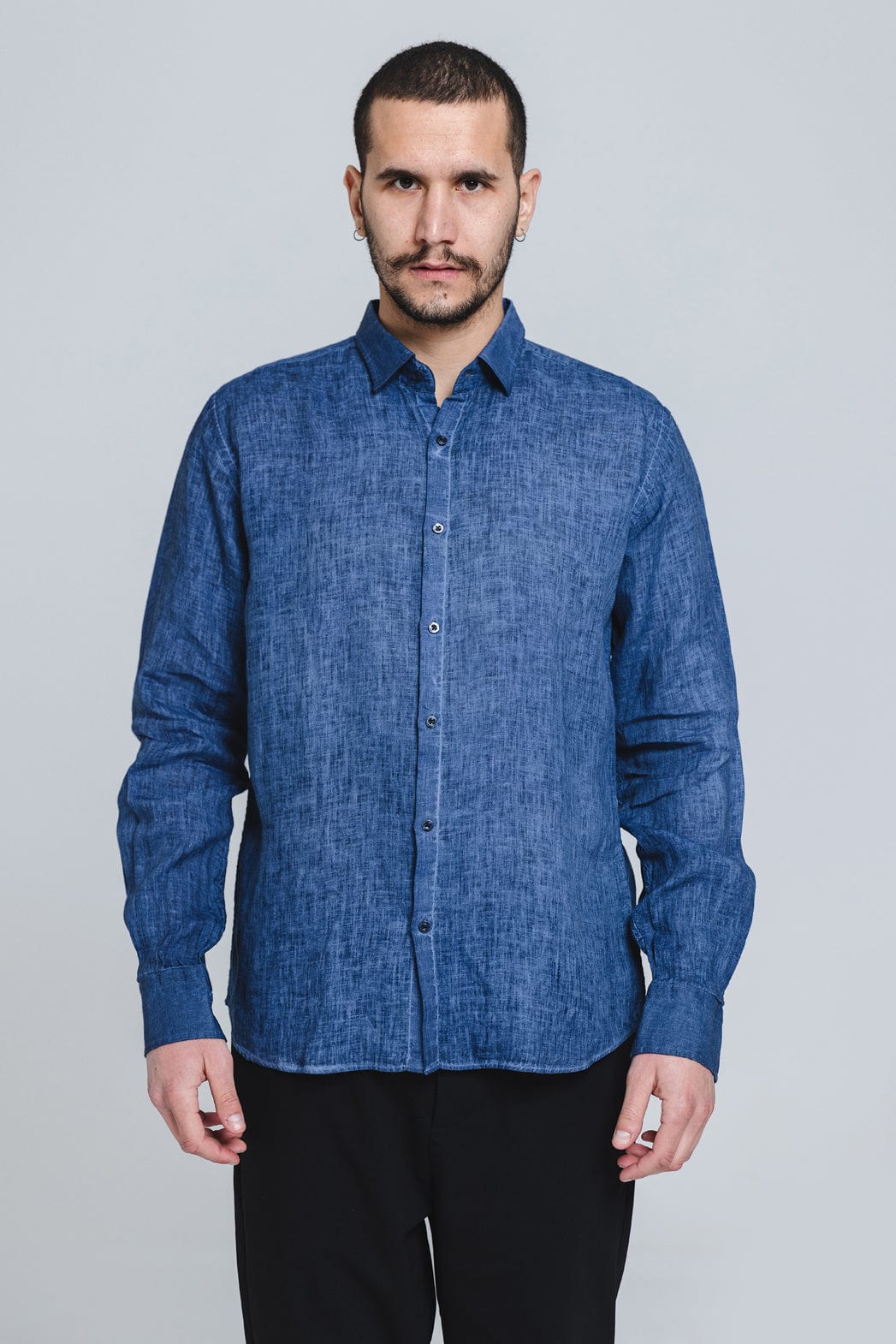 Karl Lagerfeld Men's Linen Shirt Blue 605900 501674