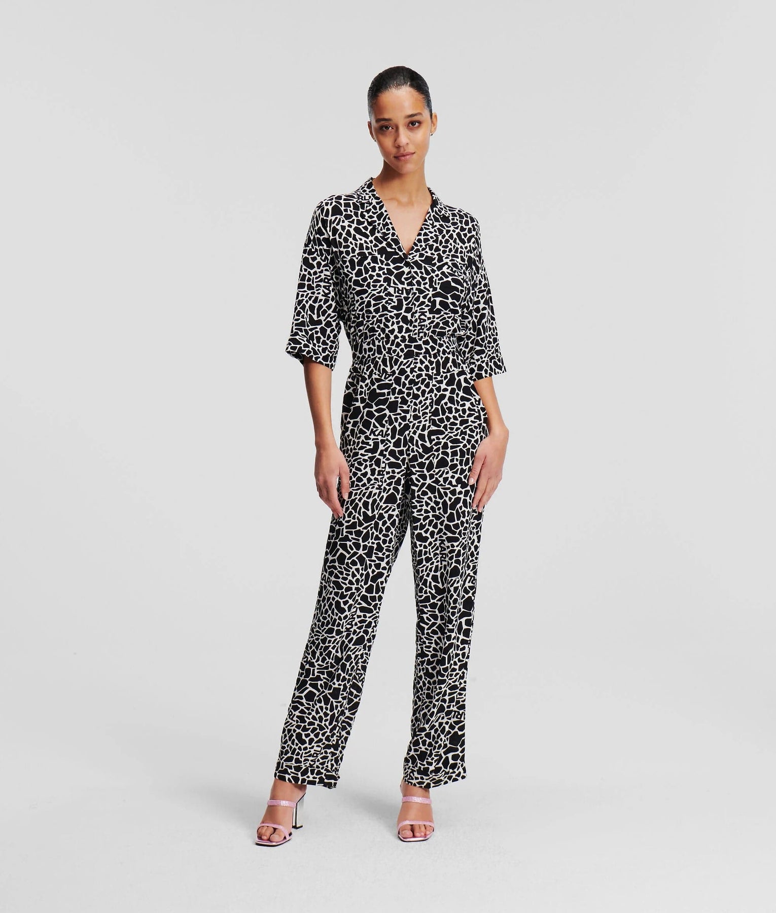 Karl Lagerfeld Giraffe Print Jumpsuit White/Black 241W1311