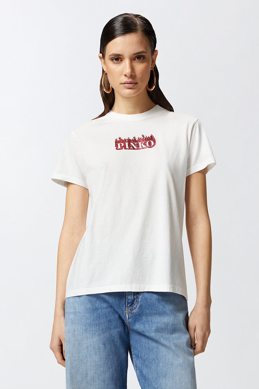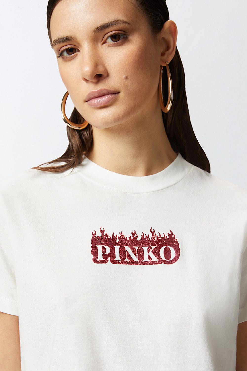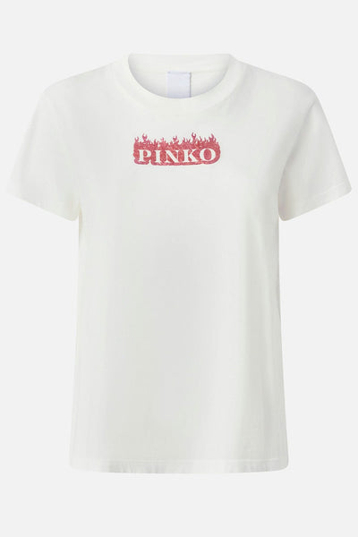 Pinko Trapani Flame and Logo-Print T-shirt White 105050 A2D6 Z05