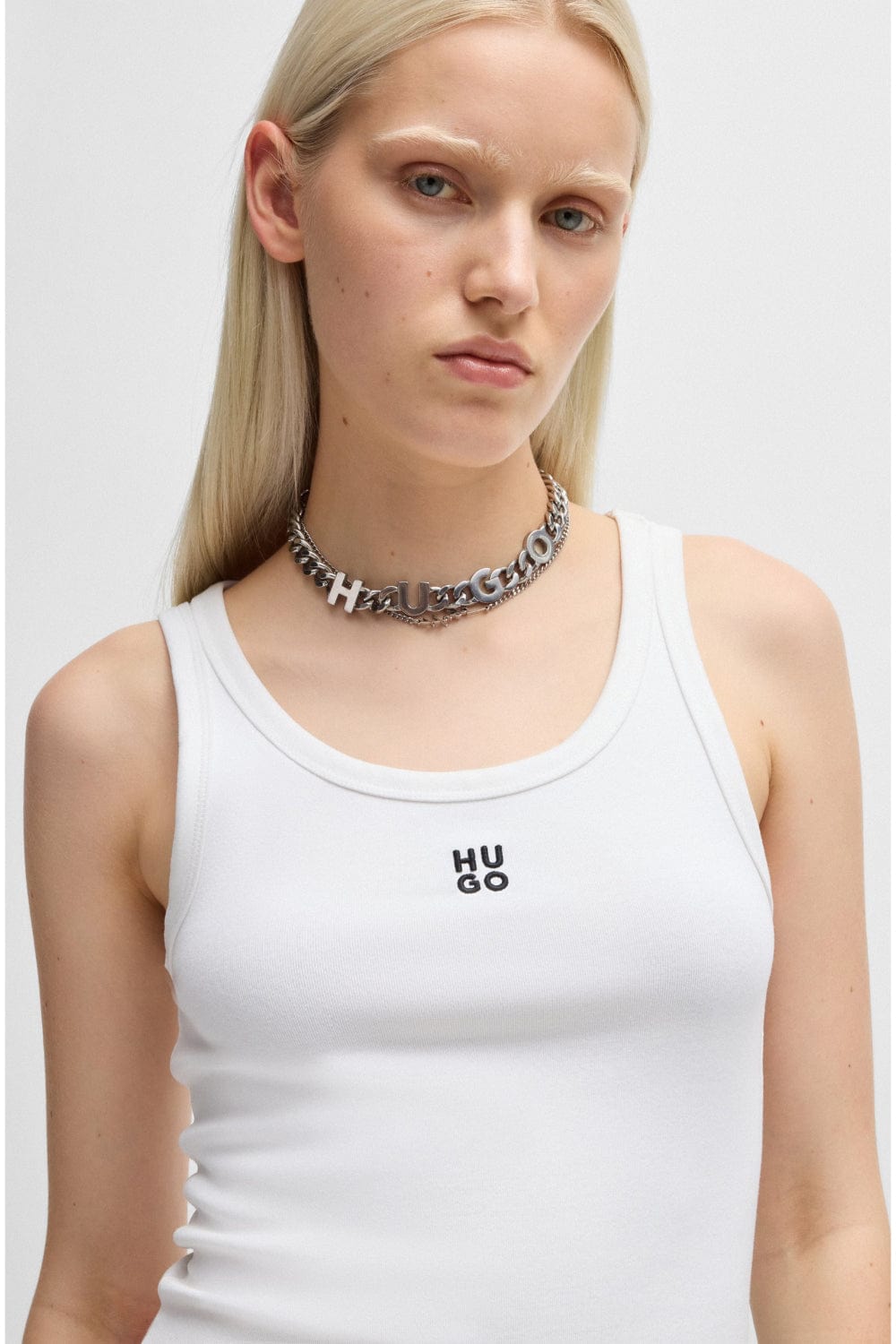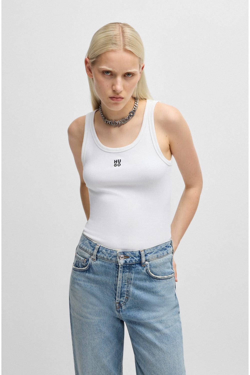 Hugo Datamia Cotton-Blend Tank Top with Stacked Logo Άσπρο 50514489 100