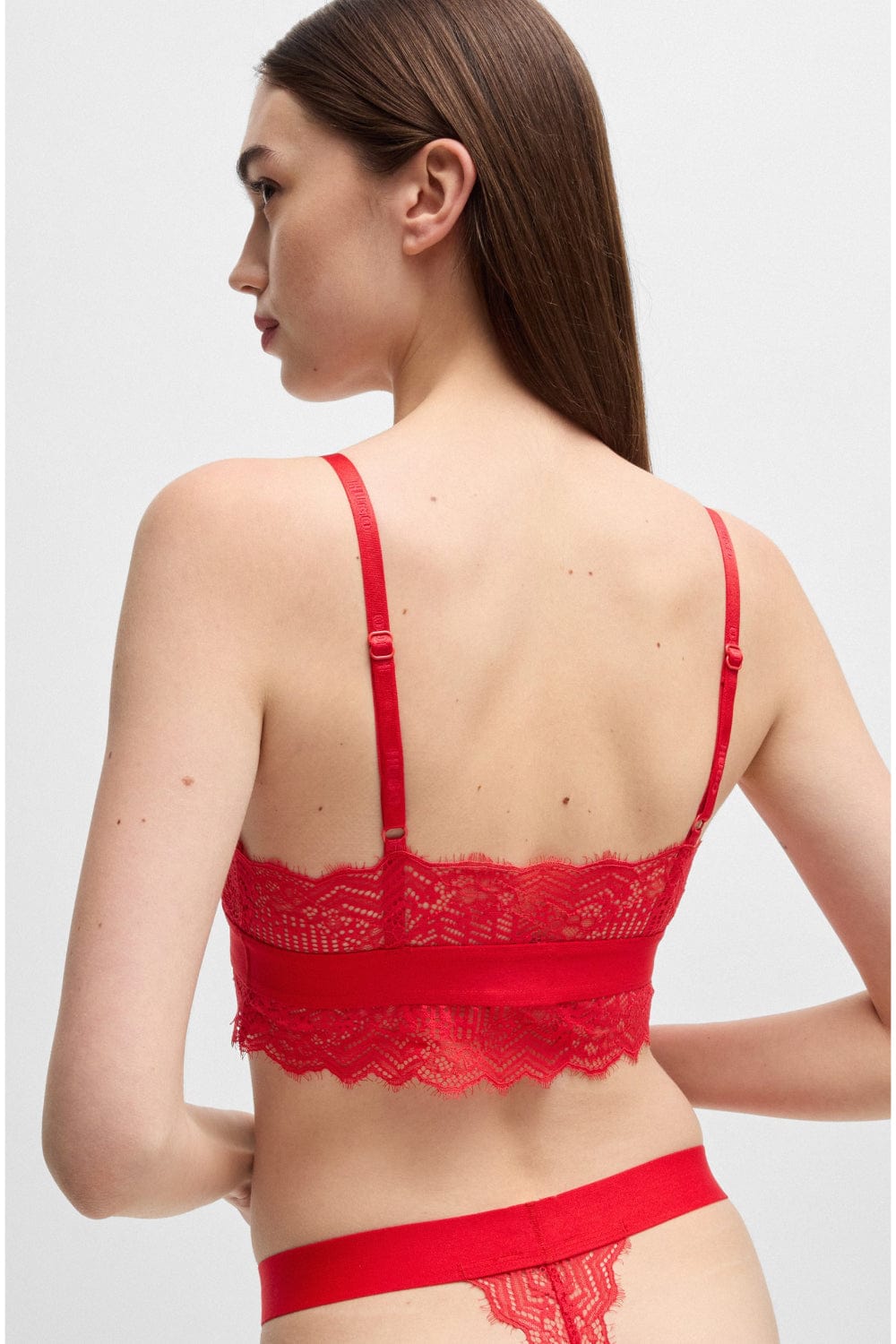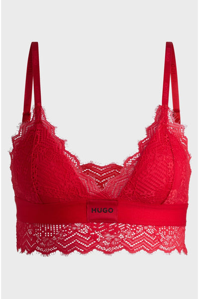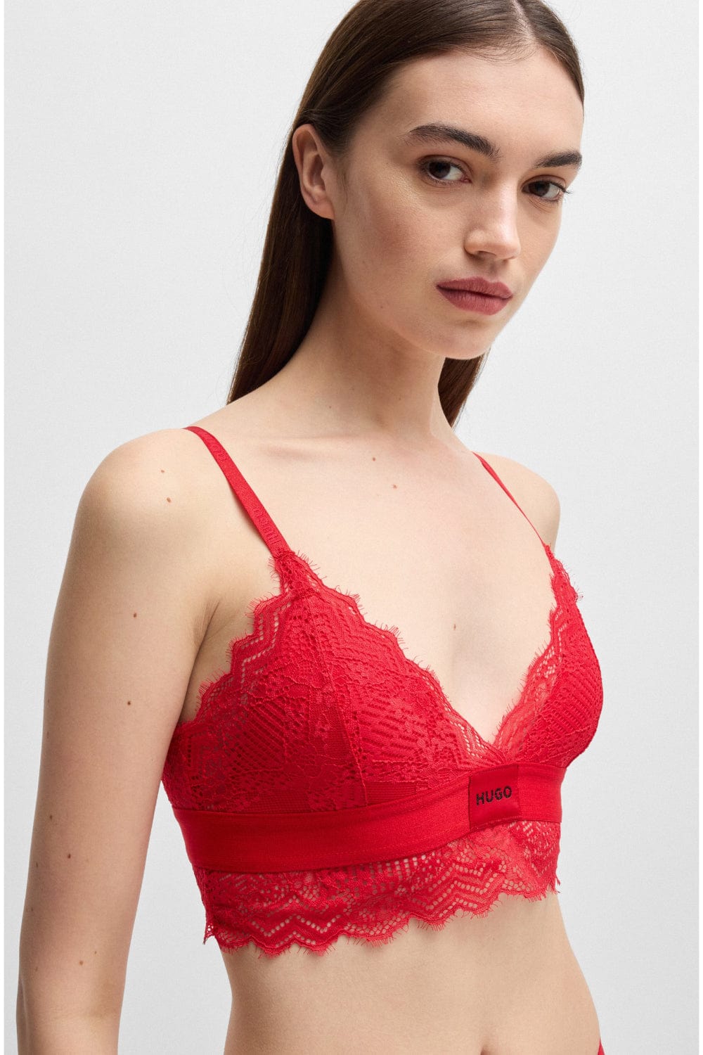 Hugo Padded Triangle Bra in Geometric Lace with Logo Label Κόκκινο 50502786
