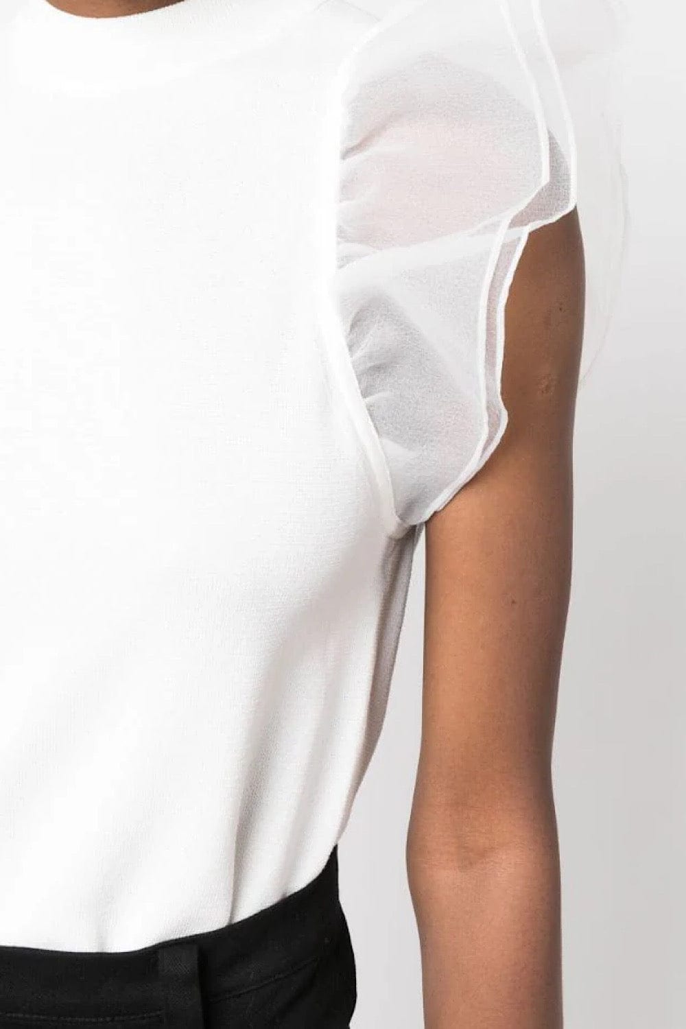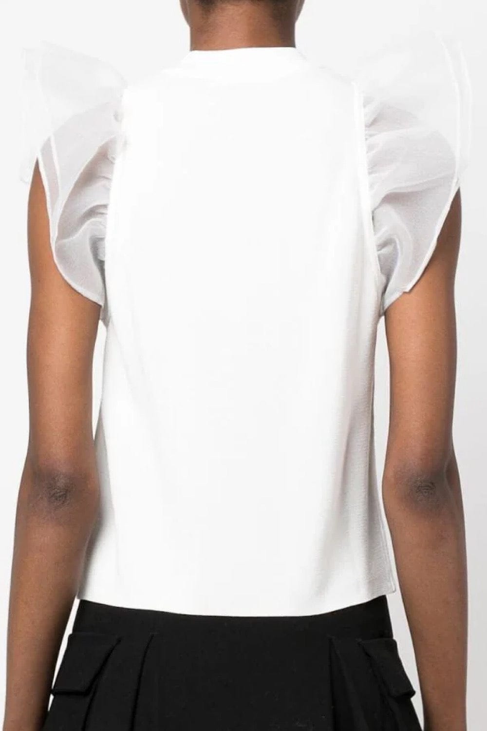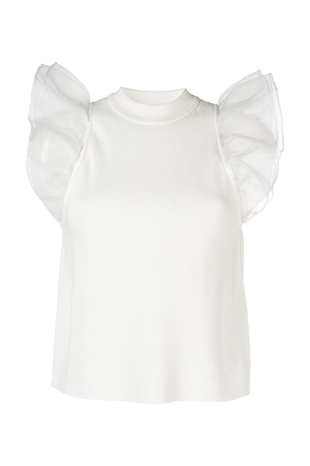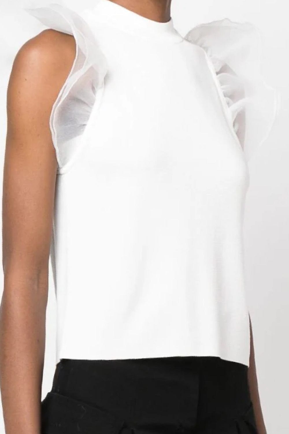 Karl Lagerfeld Flutter-Sleeves Mock-Neck Tank Top Άσπρο 235W2003