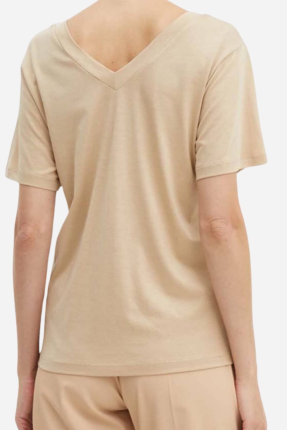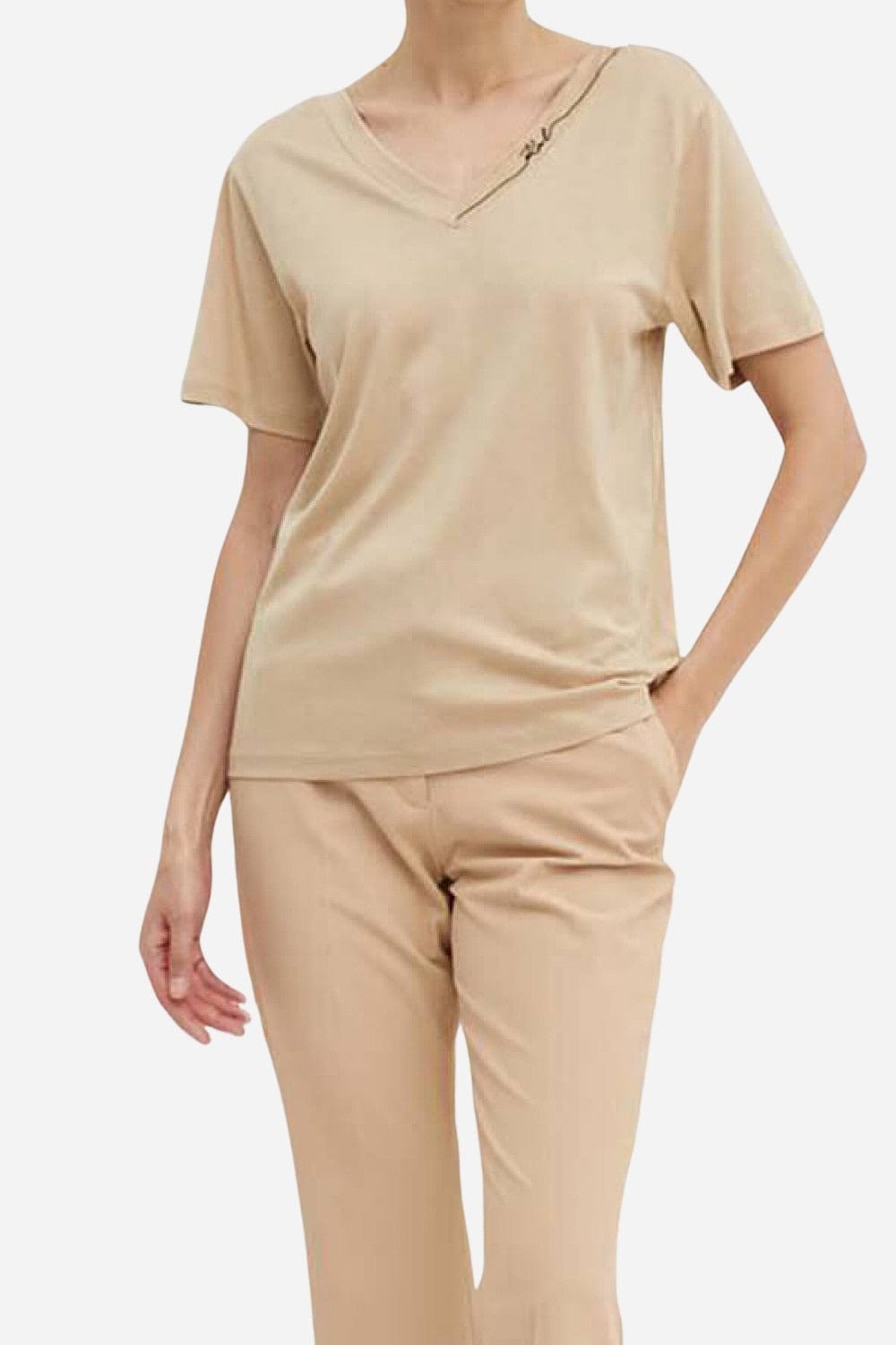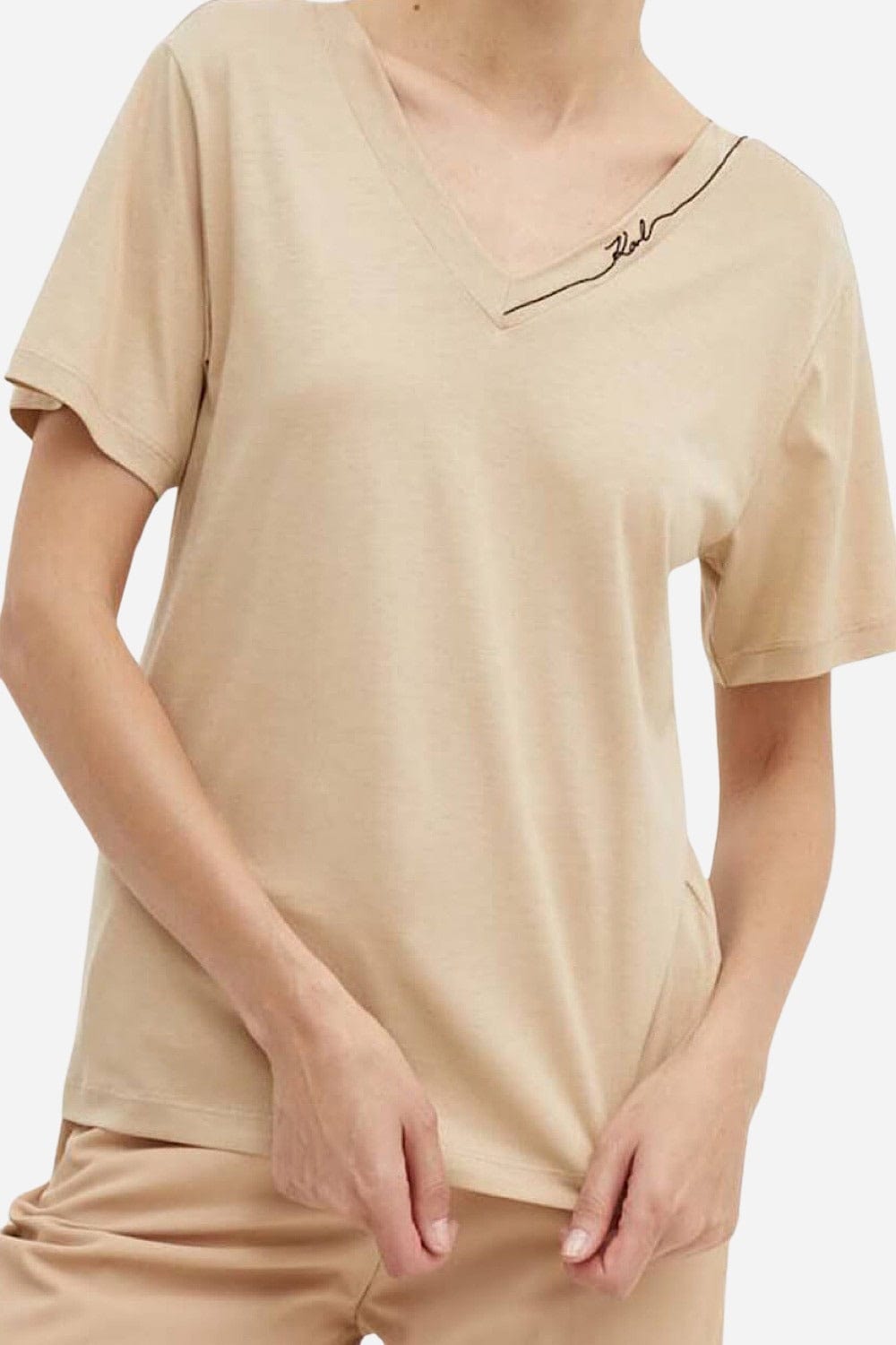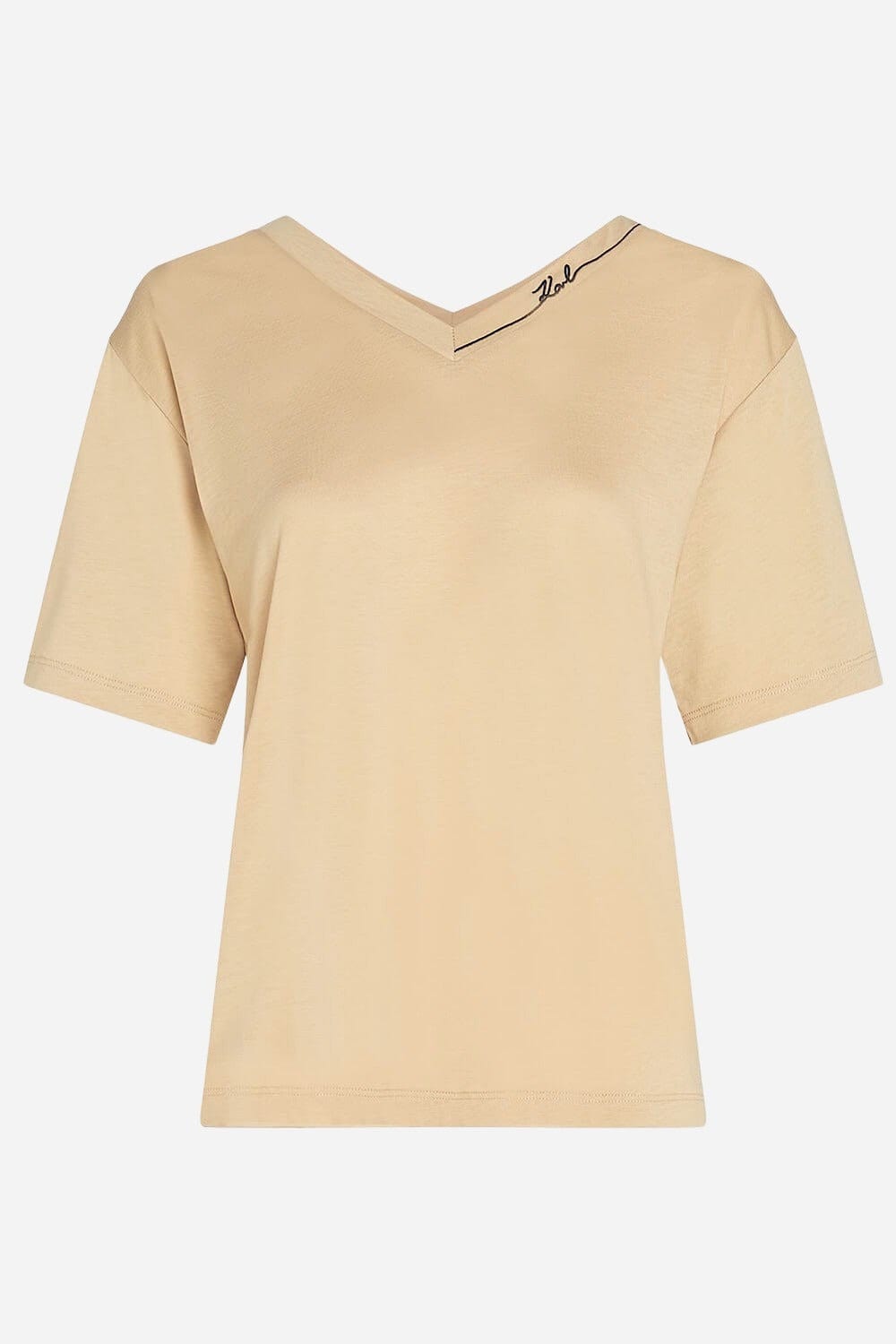 Karl Lagerfeld Signature V-Neck T-Shirt Μπεζ 245W1709 746