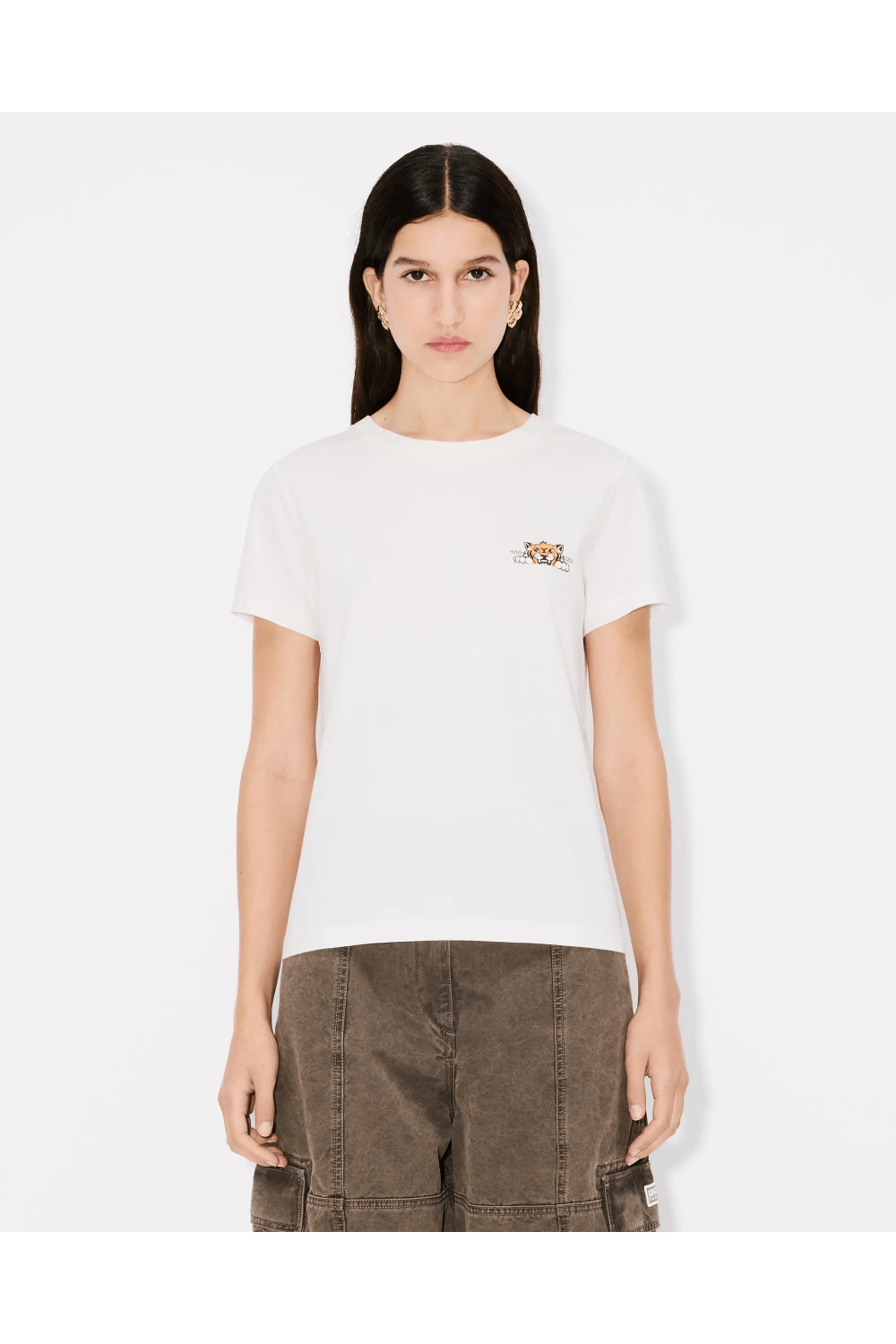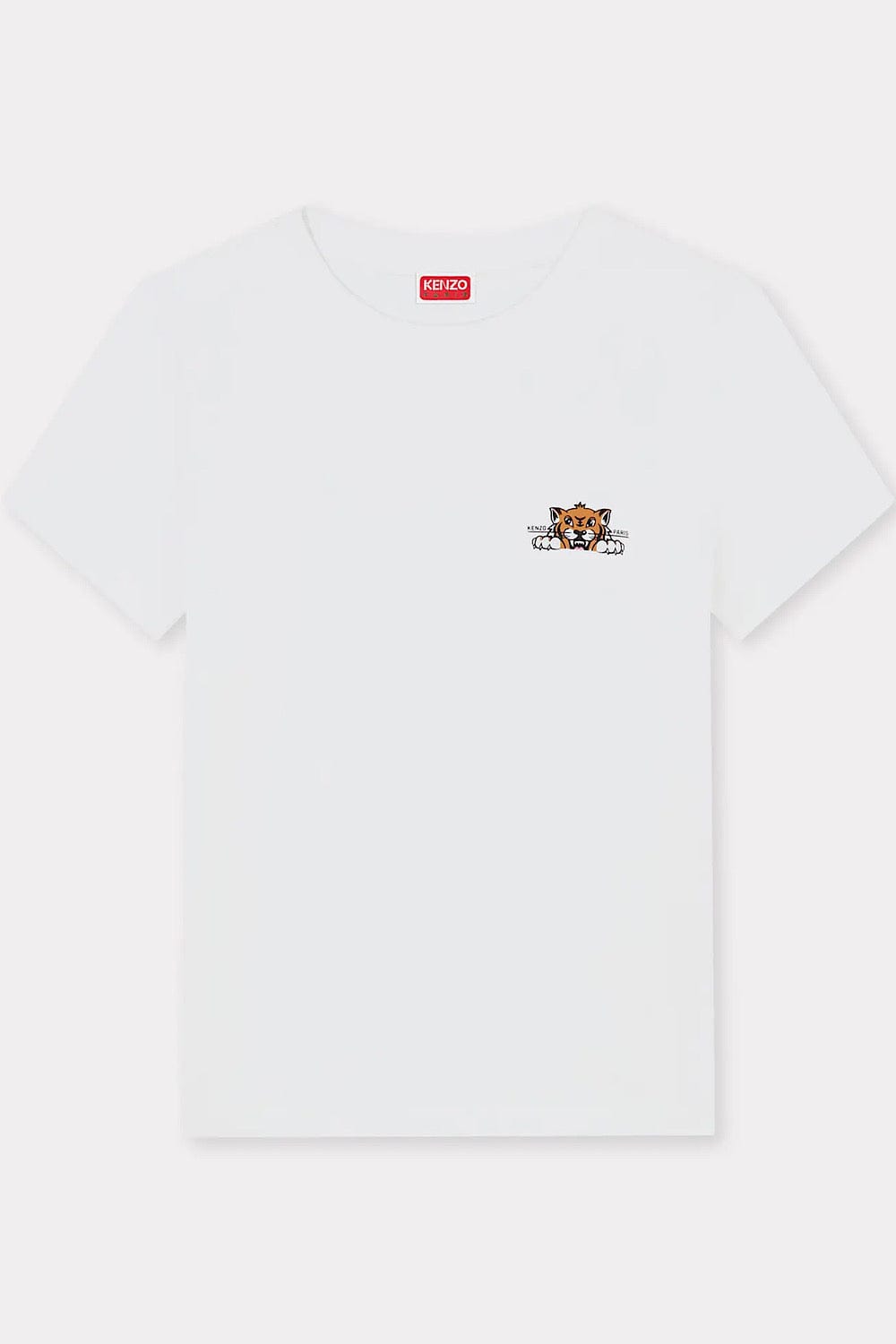 Kenzo Happy Tiger T-Shirt in Cotton Άσπρο FF52TS1694SO.02