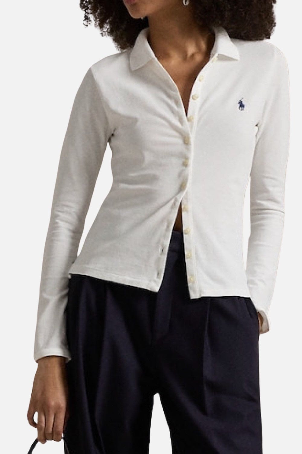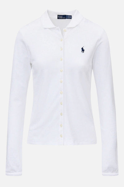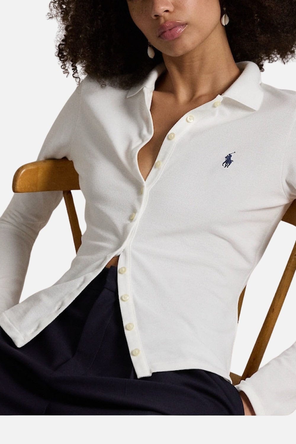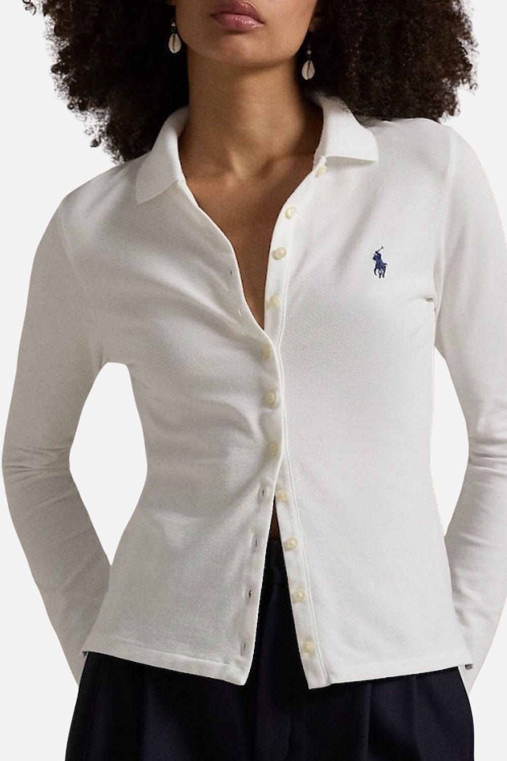 Polo Ralph Lauren Buttoned-Placket Long-Sleeve Polo Shirt Άσπρο 211941176004